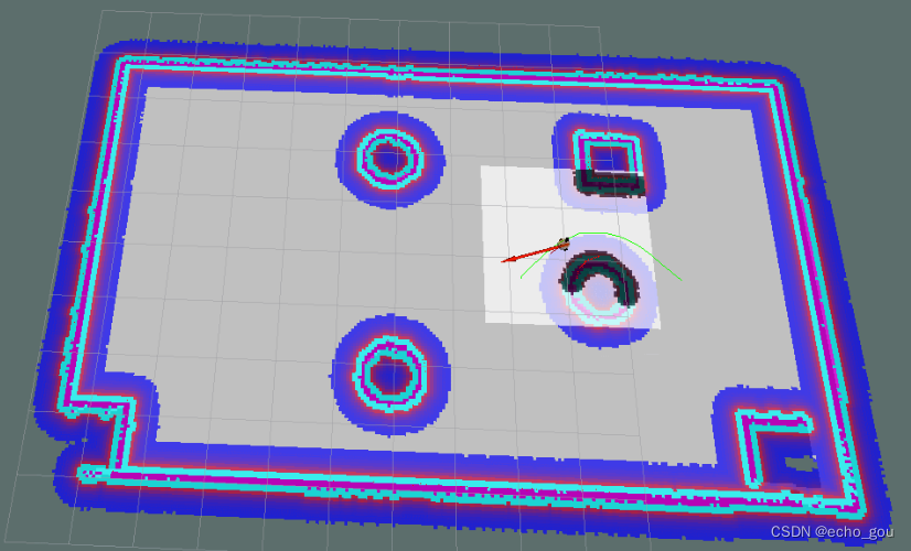 这样,在全局路径规划时,规划的路径会尽量远离障碍物,而本地路径规划时,机器人即便偏离全局路径也会和障碍物之间保留更大的自由空间,从而避免了陷入“假死”的情形。