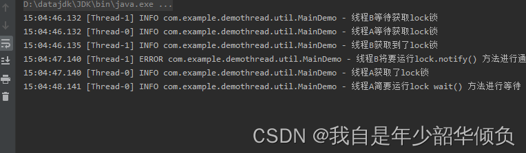 log.error("线程B将要运行lock.notify() 方法进行通知");