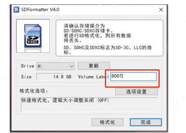 分别是命令行恢复与使用镜像制作工具Etcher对镜像进行恢复。先对需要烧录镜像的SD卡进行格式化操作,格式化步骤与树莓派中的格式化SD卡步骤一致。