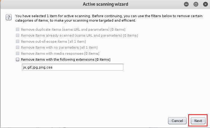 5.1.2、打开主动扫描配置向导,选择是否移除有关的页面项
