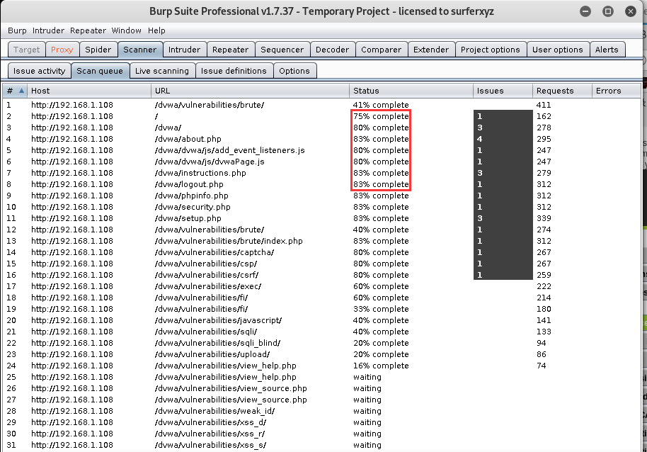 5.1.5、进入“Scanner”选项卡的“Scan queue”子选项卡,查看当前扫描的进度;