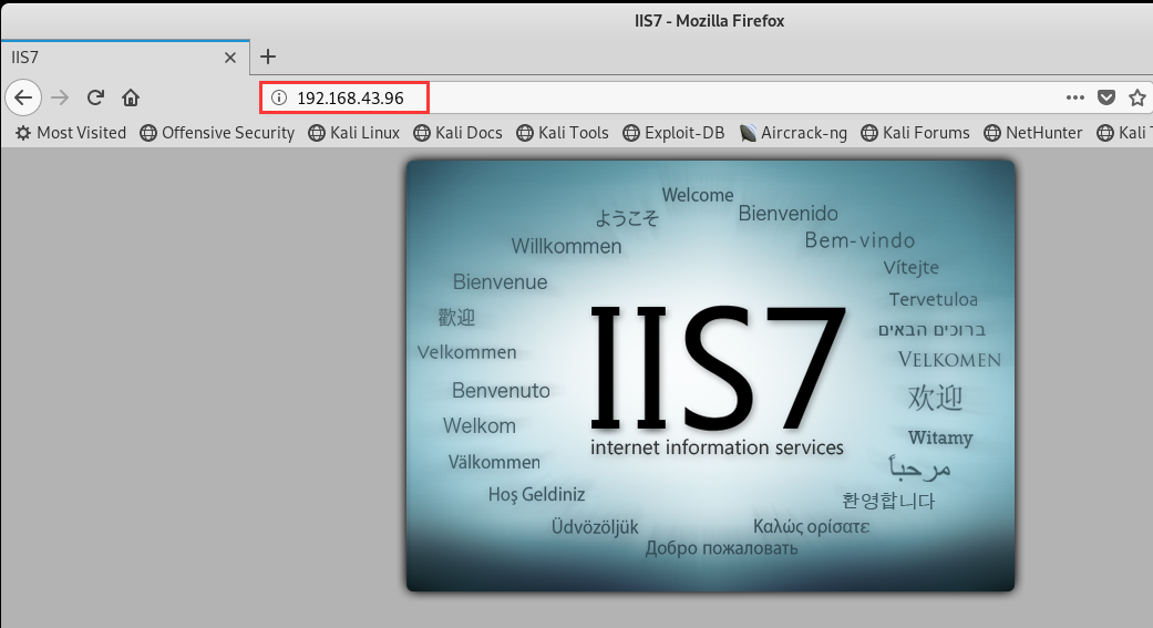 2.3.2、打开kali浏览器,在地址栏输入http;//192.168.43.96;