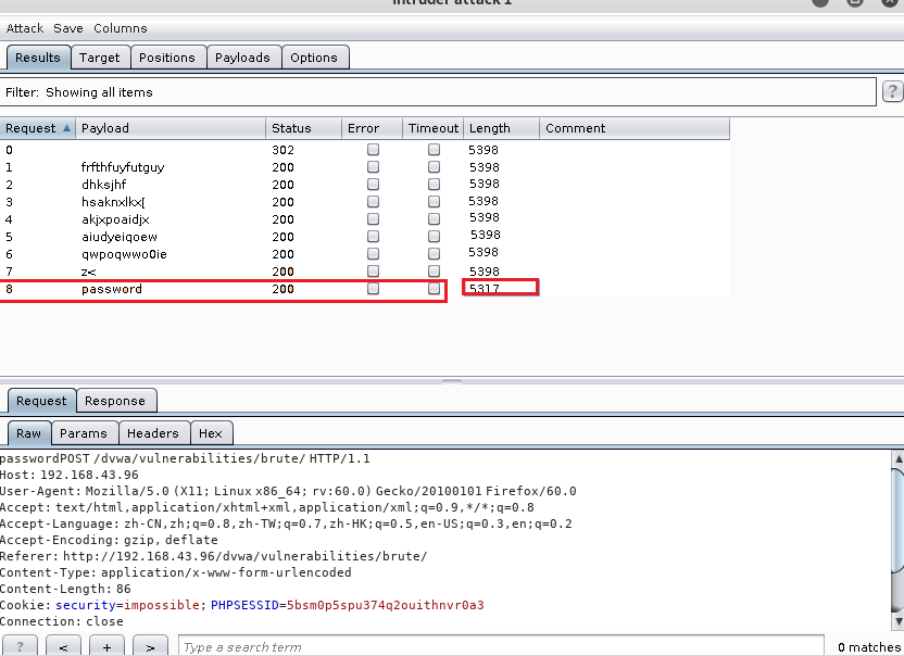 6.1.10、在爆破结果中,对密码文件中的密码进行逐个测试;