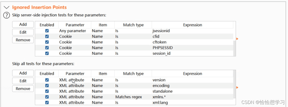 Crawl and Audit审计配置文件之Ignored Insertion Points