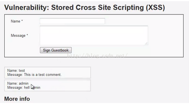 存储型相对于反射型有更大的威胁,因为反射型作为攻击者是需要把构造好的url链接发送给被攻击者,而且还要以各种手段去诱使被攻击者点击。而存储型就不存在这个问题,如果说网站存在存储型xss漏洞,那我们就可以直接将我们的语句写进数据库里,这时候我们不需要给被攻击者发送任意有恶意的链接,只要他登录这个网站,或者访问这个网站,那这个恶意脚本就会执行。