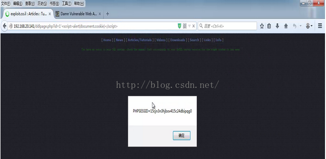 这里需要用到一个函数document.cookie同样是个警告提示。可以看出它的PHPSESSID已经被显示了出来,但这种显示是不可能达到攻击效果的