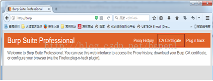 2、设置完成后,在浏览器输入http://burp 查看访问burp的欢迎页,如下图