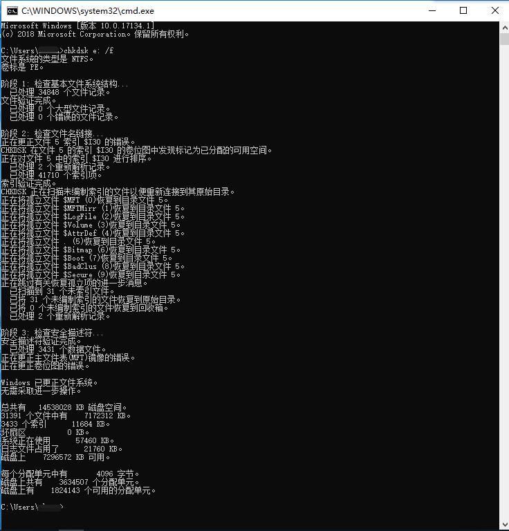 /F 修复磁盘上的错误。