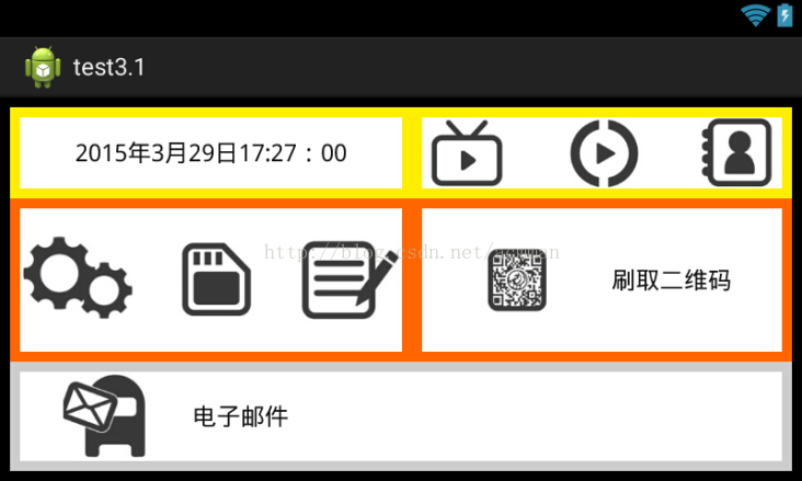 以上就是无奈夏天最近收集整理的关于【Android开发】范例1-使用表格布局与线性布局实现分类工具栏的全部内容,更多相关【Android开发】范例1-使用表格布局与线性布局实现分类工具栏内容请搜索靠谱客的其他文章。