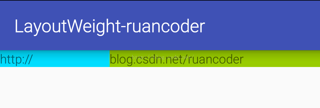 这里,TextView的宽度声明为wrap_content,也就是其内部文字的宽度,两者文字的长度是不同的,所以相当于两者声明的宽度实际为其内部文字宽度。weight值相同,说明两者会平分剩余宽度。所以,就出现了我们所看到的现象,二者并未按照1:1的比例来显示,但二者的空白区域(即非文字显示区域)却是1:1的。