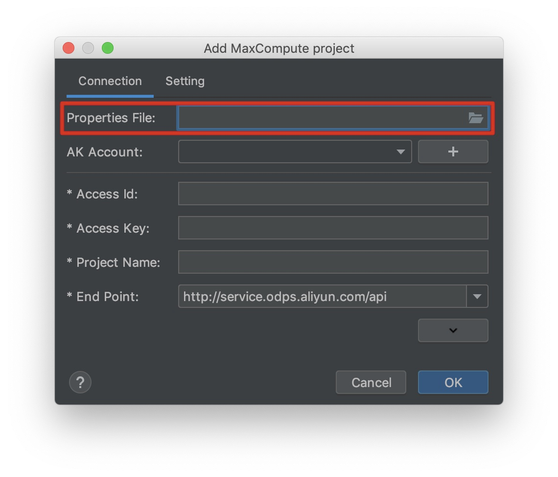2. 创建MaxCompute项目并设置项目连接。插件安装完成后,创建MaxCompute项目,在新建项目选项中选择如下: