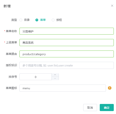 1)启动renren-fast的前后端开发平台,为商品系统添加目录和菜单。