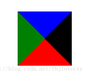 上图为一个div宽高都为0时,设置border宽度后显示的效果,通过将多余的边设置成和背景色相同,那么使用两个三角拼接的方法就可以得到一个完美的菱形。