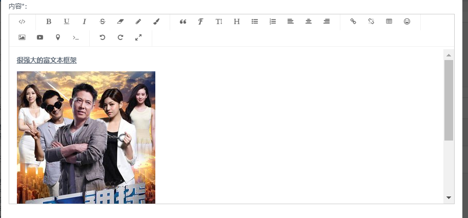 一,相信很多人用过很多富文本的框架,现在我向大家推荐一个很实用的一个富文本框架,具有丰富的功能项,容易使用。