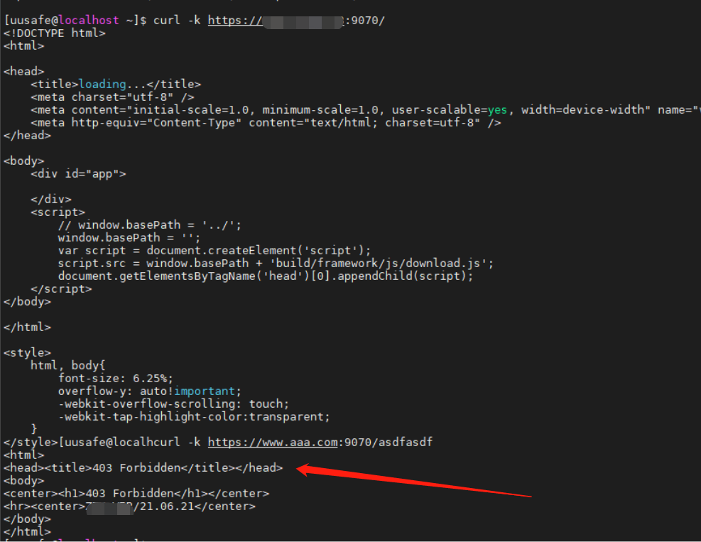 然后用自定义域名去访问 9070 看是不是403