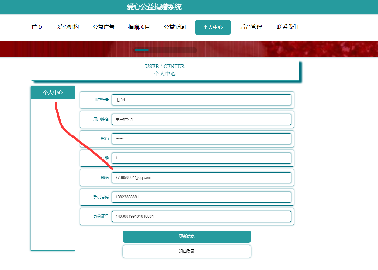 用户个人中心: