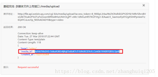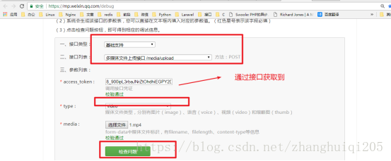 在线调试接口上传视频素材:
