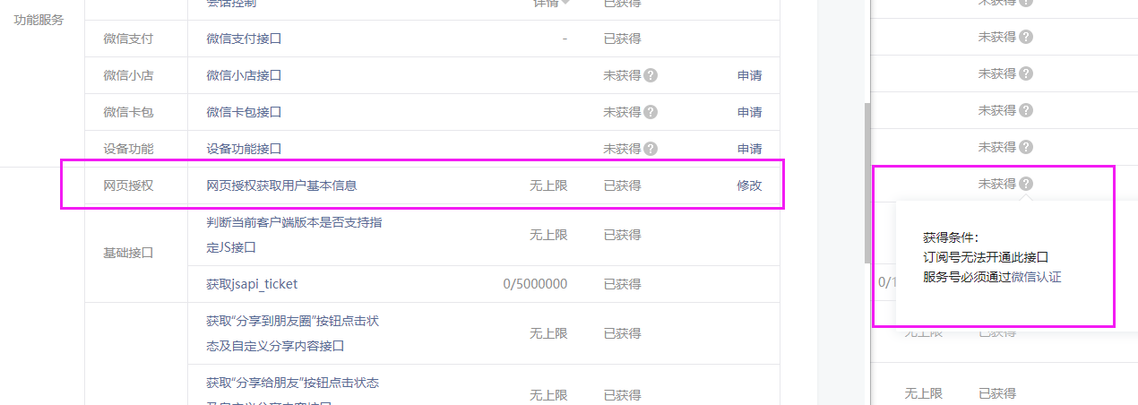 只有通过微信认证的服务号可以使用“网页授权”接口。