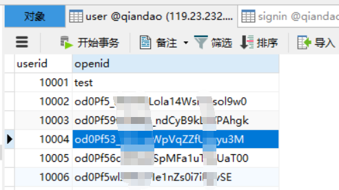 - userid:用户在本签到系统中的用户ID,即项目中的唯一标识。主键。int型。