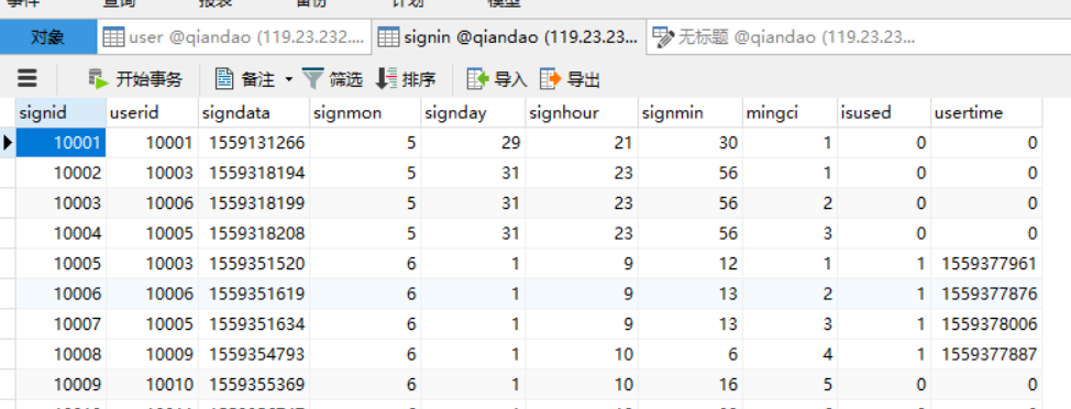 然后是用户签到记录表。signin表单详情如下: