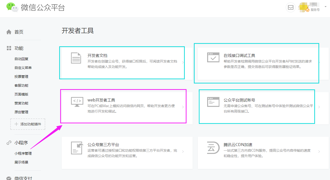 如何对公众号网页进行调试?微信公众平台的开发者工具栏就给出了Web开发者工具:微信web开发者工具