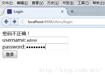 输入正确的用户名/密码,admin/123。见shiro.ini文件