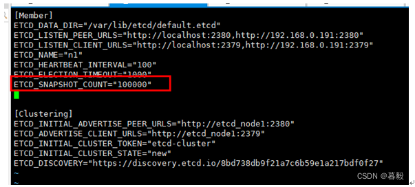 在存储为snap的时候会有大量数据进行写入,影响Etcd的性能。建议将这个值调整的小一些,例如将这个数字改为2000。