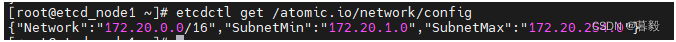 etcdctl mk /atomic.io/network/config '{"Network":"172.20.0.0/16","SubnetMin":"172.20.1.0","SubnetMax":"172.20.254.0"}'