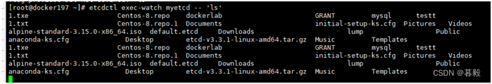 以上命令:etcdctl extc-watch myetcd --‘ls’的意思是当myetcd这个键值改变时,就执行ls命令。