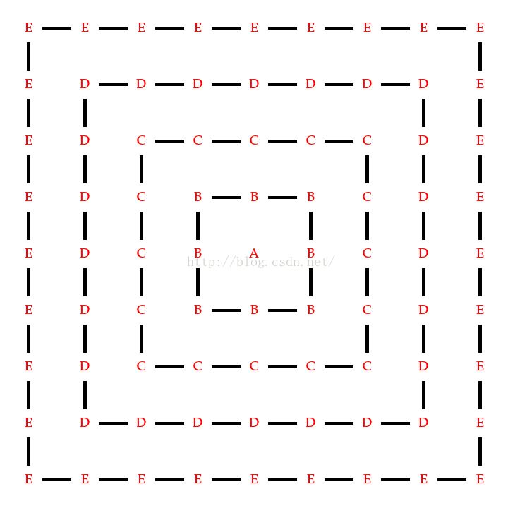 那么,我们可以暴力枚举最深到达的哪一层,最深的一层一定是从左上角进入,走一个“L”形再从右下角出去,所以我们可以每次转移的时候就是到达上一个前缀最小值的左上角的值+中间穿越的非前缀最小值点*1+从上个前缀最小值的左上角到达当前层穿越的点数*上一个前缀最小值的权+当前的L,处理当前的L其他的根据对称性都要*2.