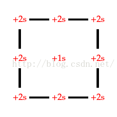这样从左上角到右下角就会有条 {2,2,1,2,2} 的电流路径,耗时为 9 秒。