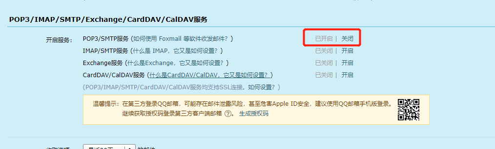 3、拉到这个地方,开启POP3/SMTP服务服务,按照指示操作获取你的邮箱授权码