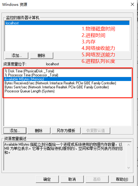 windows资源指标添加如下: