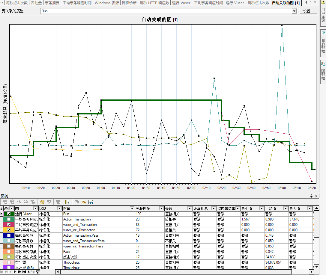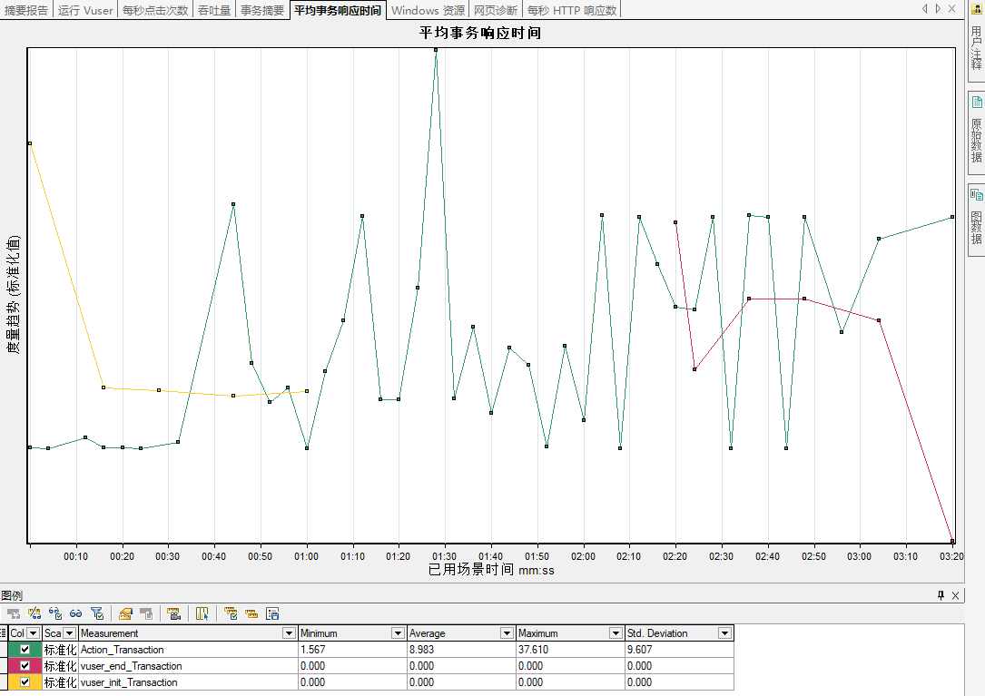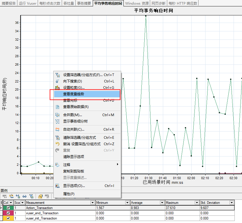 勾选查看度量趋势以后,三条线就会重合在一起,而不是homepage的事务和其他事务分开。
