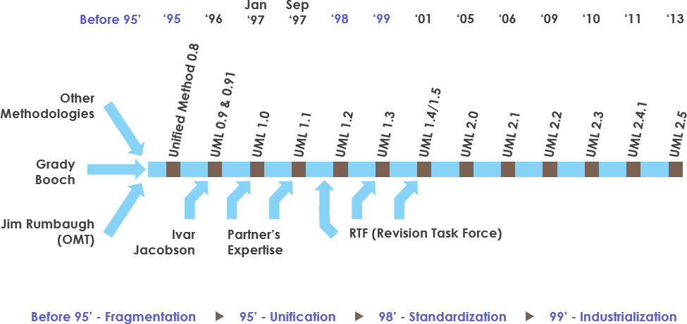 说到UML不得不提的三位大神,Grady Booch、Jacobson、James Rumbaugh,三位是UML的创始人,均为软件工程界的权威,除了著有多部软件工程方面的著作之外,在对象技术发展上也有诸多杰出贡献,其中包括Booch方法、对象建模技术(OMT)和Objectory(OOSE)过程。三人被合称为“UML三友”。