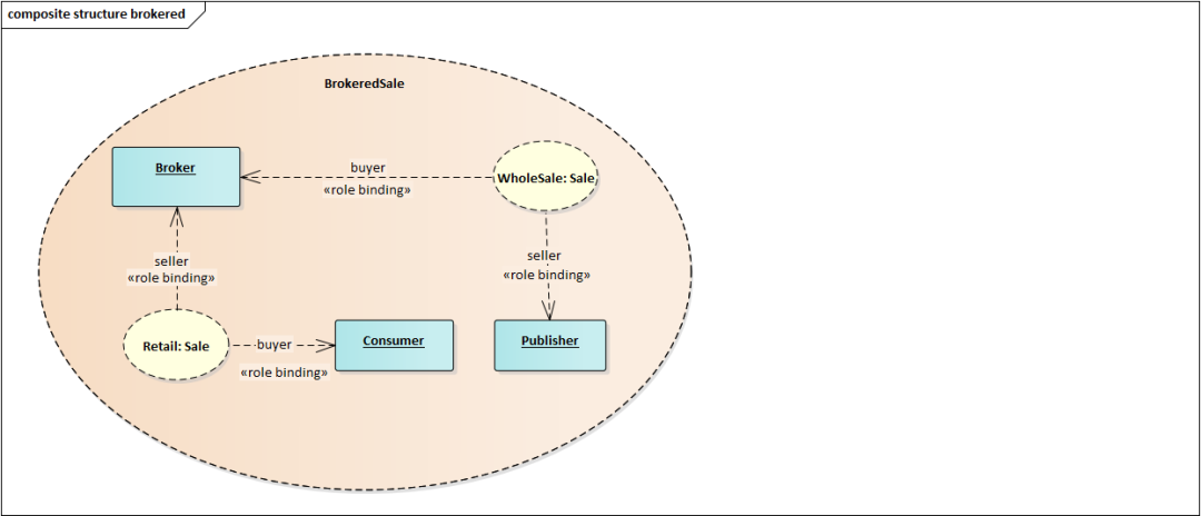 复合结构图/Composite Structure Diagram:复合结构图反映了类,接口或组件(及其组件)的内部协作属性来描述一个功能