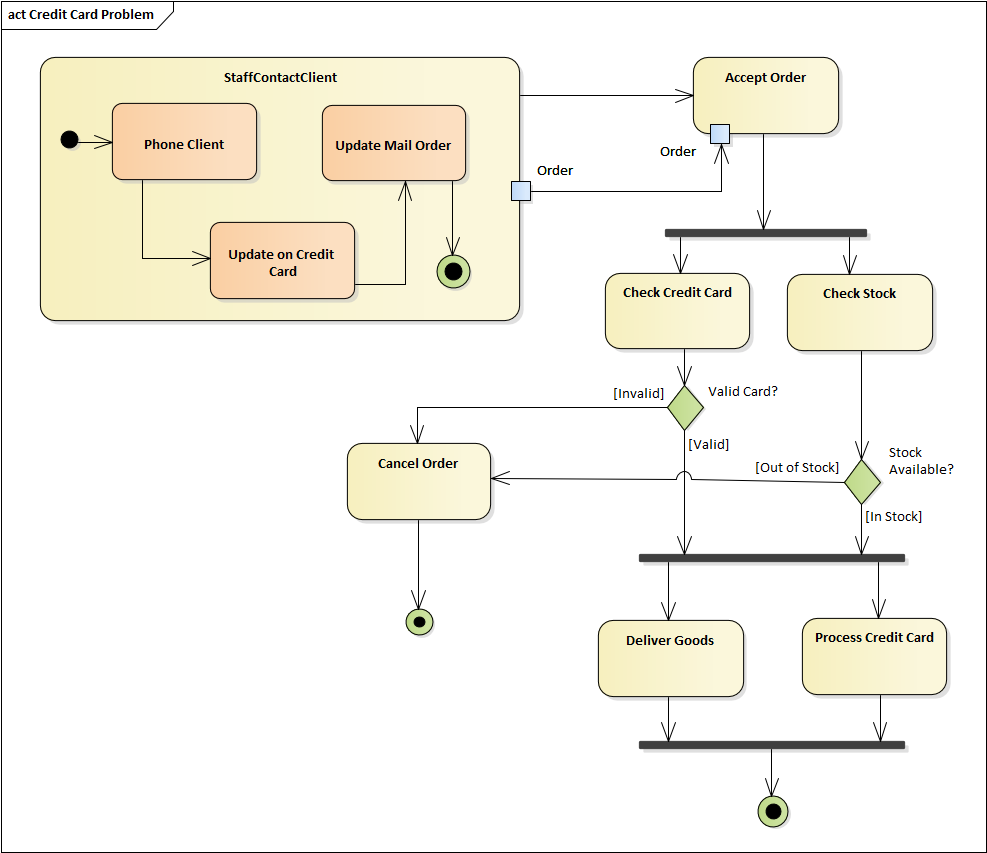 活动图/Activity Diagram:常用于描述系统级行为的实现建模。需要考虑多种因素:逻辑条件、并发、中断、数据访问等等