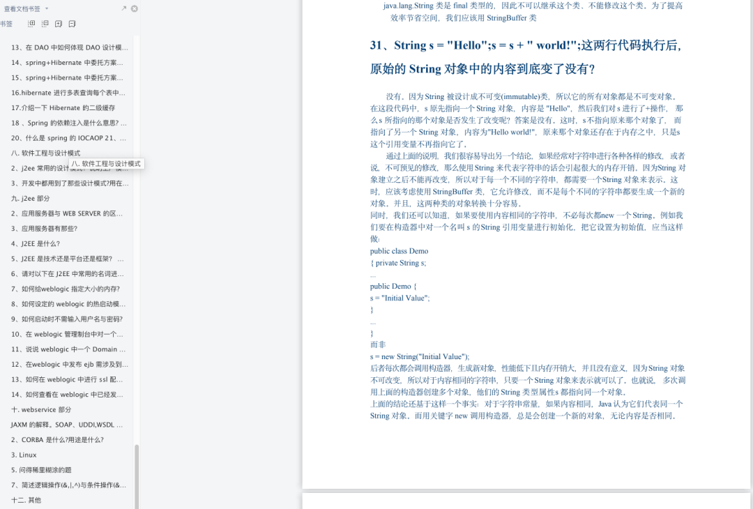 Java基础83题、算法相关12题、JavaWeb部分20题、数据库部分30题、流行框架与新技术20题、还有软件工程、设计模式、J2EE等部分知识。题目有200多道,共146页。