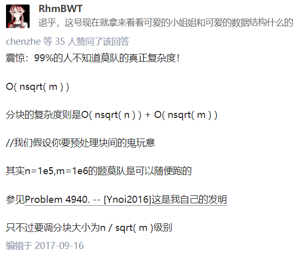 *注:只有普通莫队是莫涛提出的,其余都是后人根据不同情况YY得出的。