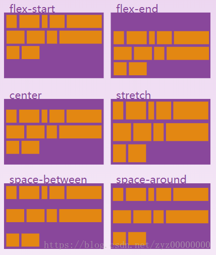 该属性在多行下,设置每一行在容器的排列。