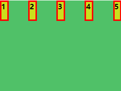 space-around:每个子元素之间的间隔相等,且子元素之间的间隔比子元素与父元素的距离大一倍。