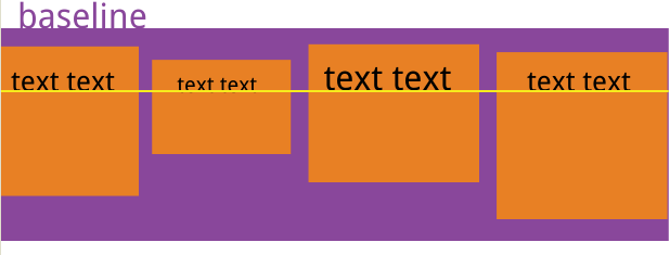 - align-items: flex-start | flex-end | center | baseline | stretch;
