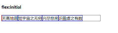 flex:initial是flex的默认属性,具体表现为,当容器有剩余空间时不增长,当容器空间不足时会缩小,尺寸自适应内容;