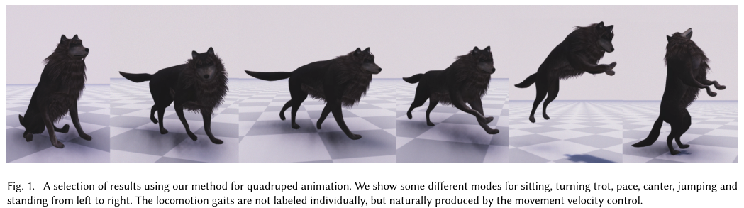 - 第一个系统性的方法-----构造数据驱动的能生成高质量的拥有复杂动作模式和转换的动画的四足角色控制器。