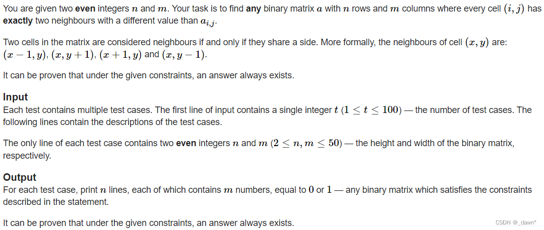 给出两个偶数,构造一个01矩阵,使得每个方块周围与它不同的方块数是2。