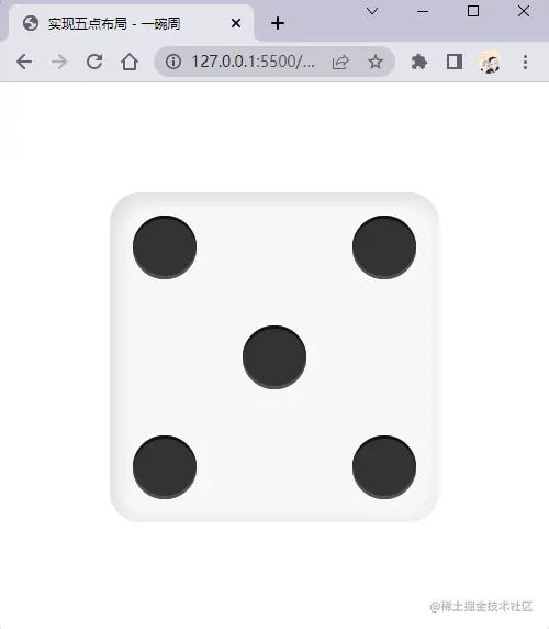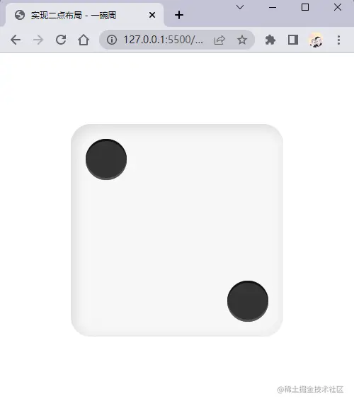 现在我们实现色子的二点布局,实现代码如下: