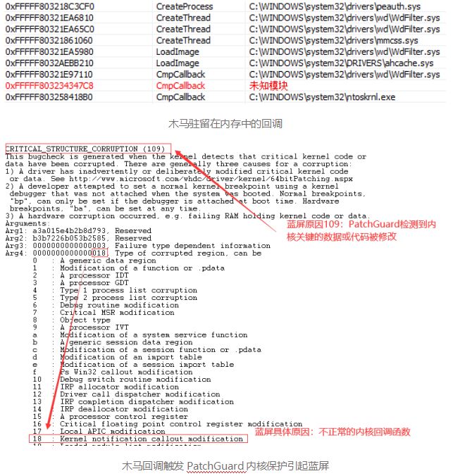 它的原理是在内核里埋设一些自我检查的代码,不定时检查内核有没有被篡改,如果发现篡改就会主动触发蓝屏。