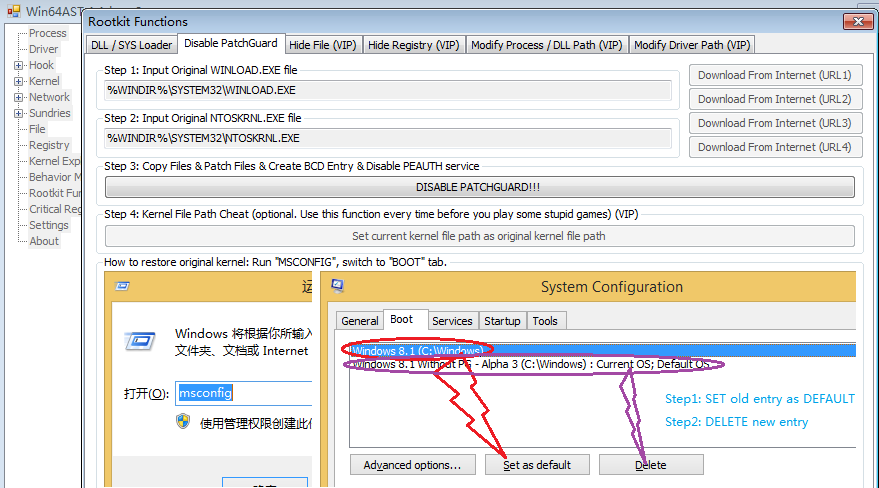 第三步是,拷贝文件,创建bcd项,禁止PEAUTH服务;然后即可禁止;