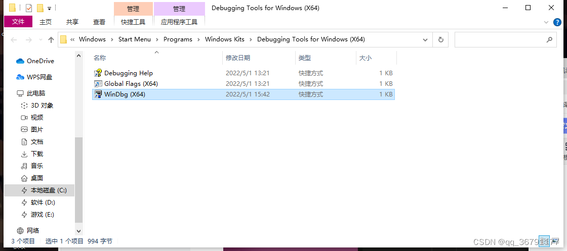 原来是: "D:Windows Kits10Debuggersx64windbg.exe"
