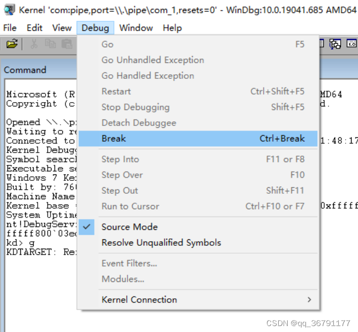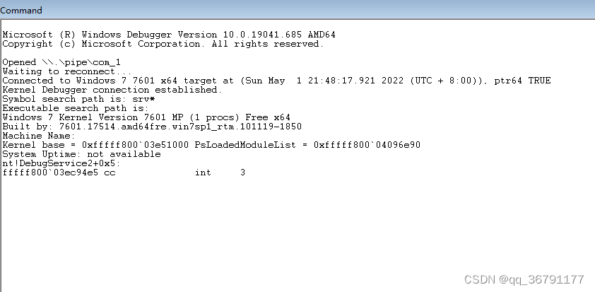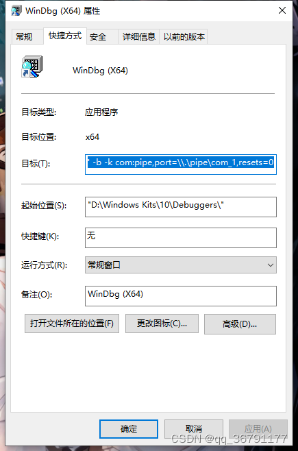 加上后是: "D:Windows Kits10Debuggersx64windbg.exe" -b -k com:pipe,port=\.pipecom_1,resets=0